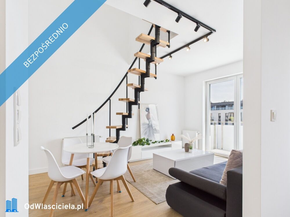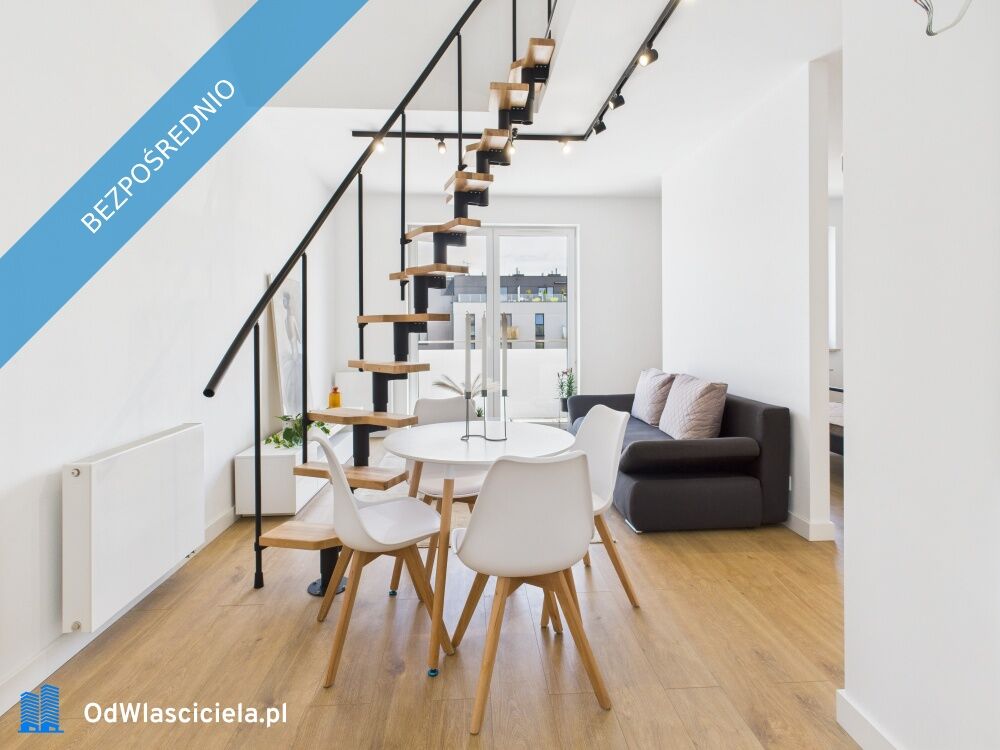 Na sprzedaż bezpośrednio: Nowe nowoczesne, dwupoziomowe mieszkanie z antresolą balkonem i tarasem w Łomiankach pod WarszawąPowierzchnia użytkowa: 56,64 m²