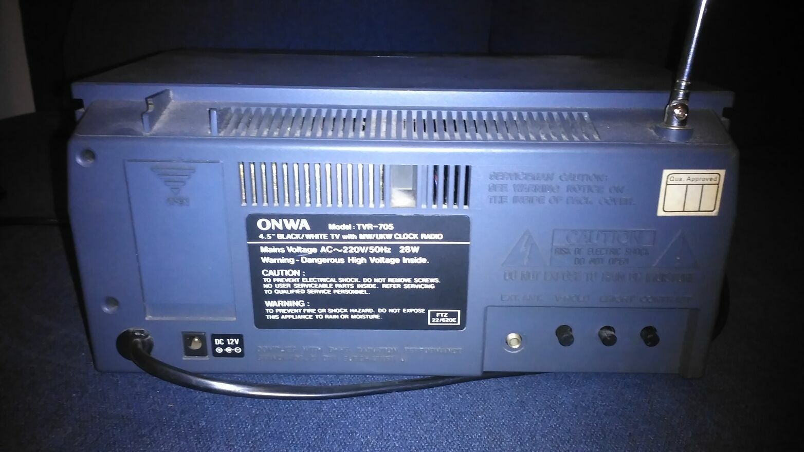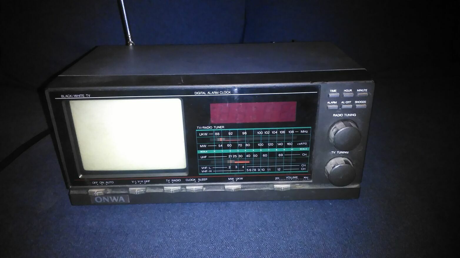 Sprzedam telewizorek ONWA BLACK WHITE TV , cena do negocjacji,Mains Voltage AC 220 V/ 50 Hz 28 W , DC 12 V. DIGITAL ALARM CLOCK, RADIO TUNNING, TV TUNNING. ULKW, MW, UHF, VHFL, VHF H.