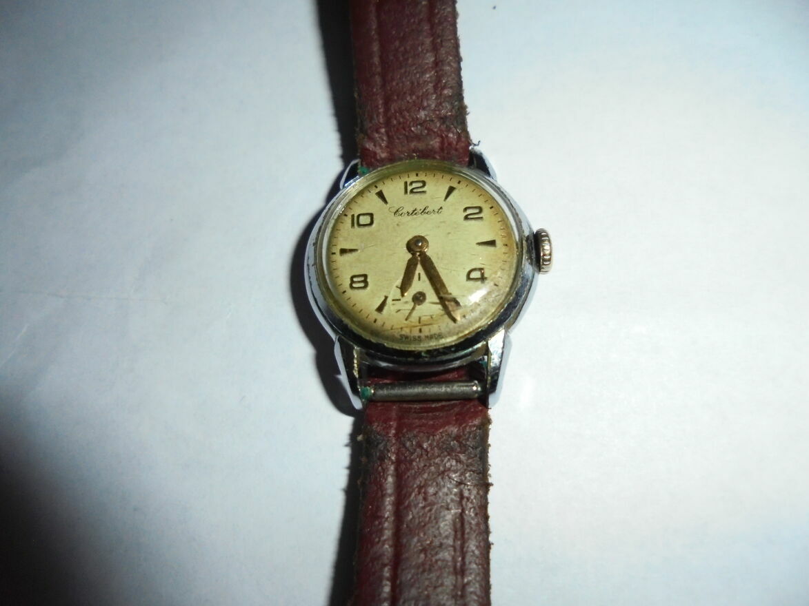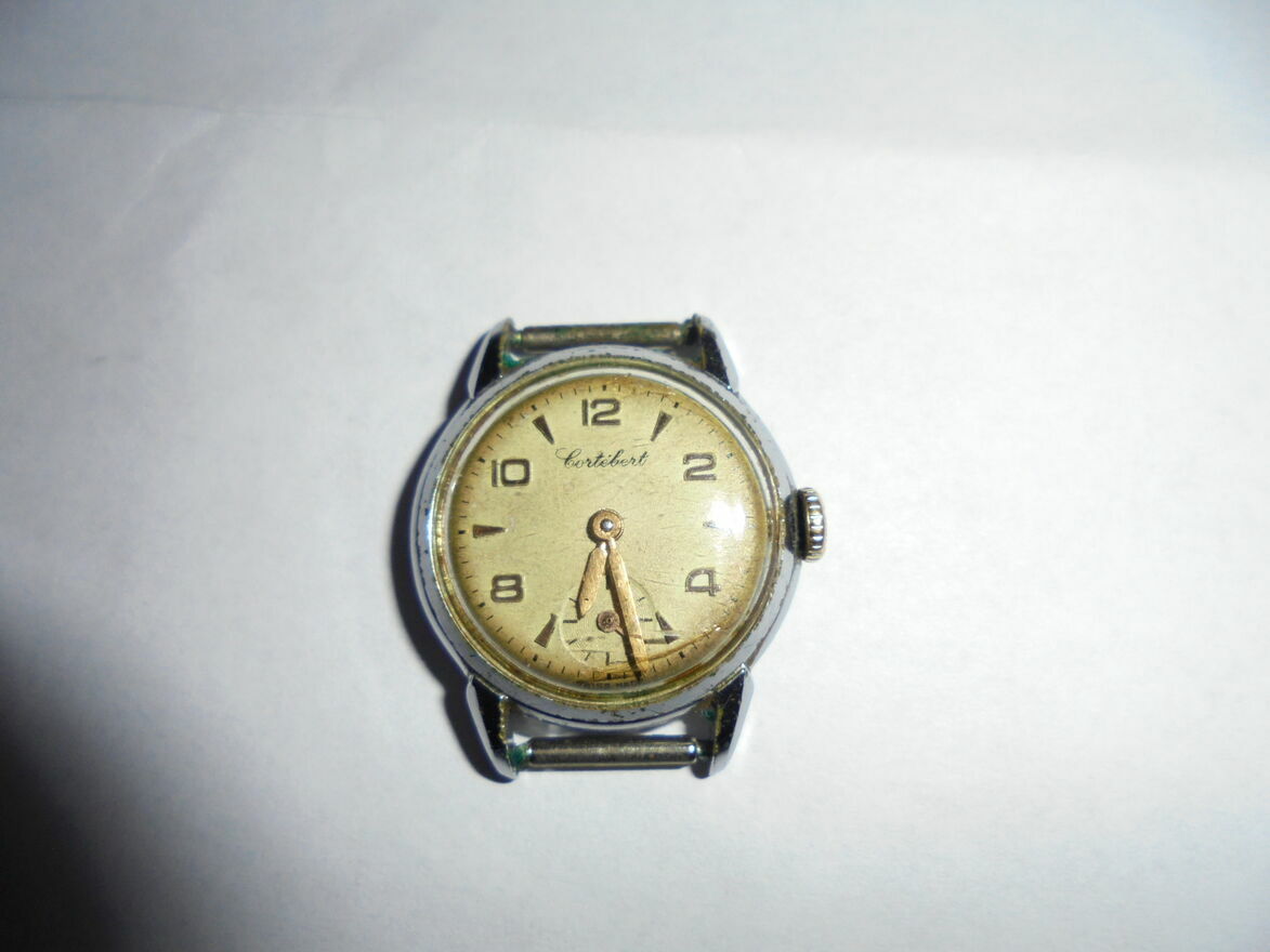 Sprzedam zegarek Cortebert, złote wskazówki i cyfry, mechaniczny nakręcany z lat 1960/61 w dobrym stanie. Obecnie sprawdzany po kilku latach nieużywania. Nadal chodzi. Może być z paskiem skórzanym.Na przodzie na tarczy dodatkowo sekundnik.